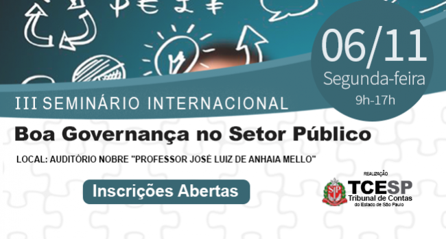 23/10/17- O Tribunal de Contas do Estado de São Paulo (TCESP) promove no dia 6 de novembro, na sede da Corte, na capital paulista, o III Seminário Internacional de Boa Governança no Setor Público. Dividido em painéis temáticos e palestras, o evento reunirá lideranças políticas e especialistas para a discussão de temas ligados à...