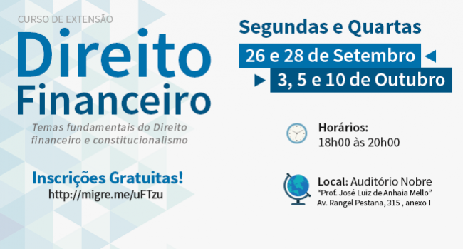 06/09/16 – SÃO PAULO – Com vistas a capacitar os estudantes, bacharéis em Direito e profissionais da área acerca das novas disposições sobre a matéria afetas ao Direito Financeiro, o Tribunal de Contas do Estado de São Paulo (TCESP) oferecerá, nos meses de setembro e outubro, das 18h00 às 20h00, o curso de extensão que abordará...