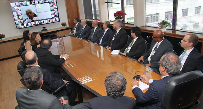 01/02/16 - SÃO PAULO – Ao assumir a Presidência do Tribunal de Contas do Estado de São Paulo (TCESP) na segunda-feira (1/2), às 13h00, o Conselheiro-Presidente Dimas Eduardo Ramalho realizou uma reunião - presencial com os Diretores dos Departamentos de Fiscalização da capital - e por meio de videoconferência com todas as 20...
