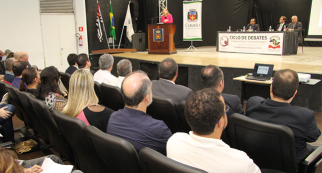 26/10/15 – CUBATÃO – A Presidente do Tribunal de Contas do Estado de São Paulo (TCESP), Conselheira Cristiana de Castro Moraes, ao se dirigir a uma plateia composta por gestores e servidores públicos da região da Baixada Santista, às 10h00, no Bloco Cultural da Prefeitura de Cubatão, falou sobre as ações da Corte de Contas e dos...
