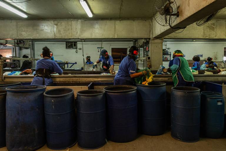 2 - O lixo é separado nas 25 cooperativas de catadores conveniadas ou em uma das duas usinas mecanizadas da cidade (uma fica em Santo Amaro, a outra na Ponte Pequena).