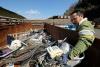1 - O caminhão passa para coletar o lixo reciclável separado. Quando não há coleta porta-a-porta na rua, a opção é levar o lixo a um dos ecopontos.