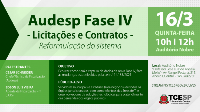 • Audesp Fase IV (Licitações e Contratos) Reformulação do Sistema- 16/03/2023
